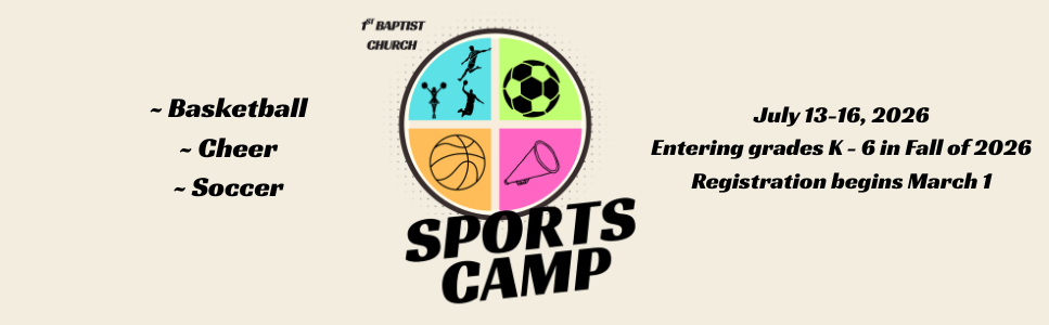 Join us for a summer Sports Camp where we will teach the principles of sports in basketball, cheer, or soccer. Kids will learn about commitment, respect, and teamwork. Sports Camp is for children entering kindergarten through sixth grade and will be hosted at our Family Life Center located at 1701 Plattin Road in Festus. Fill out this form to register.